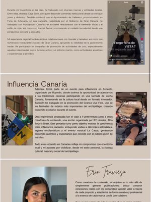 Soy Elsa Lantigua, creadora de contenido y profesional de redes sociales con cinco años de experiencia. Durante este tiempo he creado contenido tanto directamente con marcas como en formato UGC, ayudándolas a contar historias auténticas que conectan de verdad con su audiencia. Mi forma de trabajar es ágil y flexible siempre enfocada en generar contenido que funcione y aporte valor.
